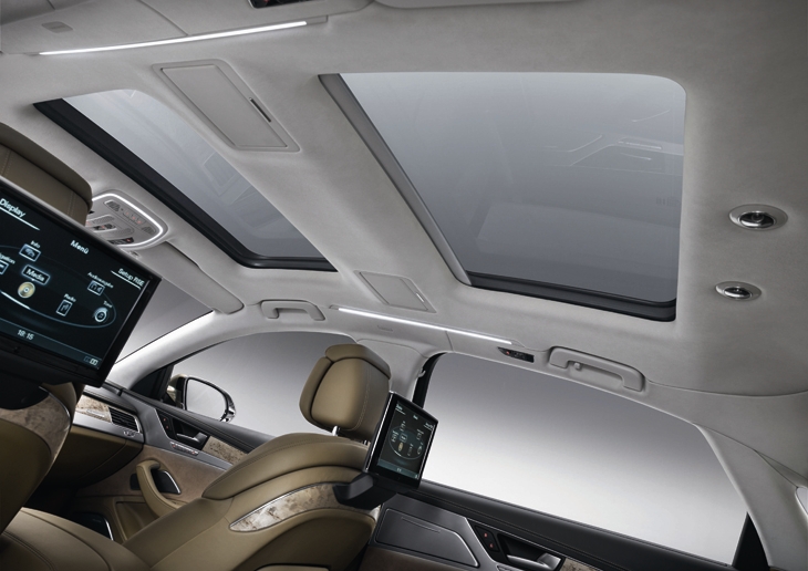 The quality of workmanship in the A8 L is simply first-class – from the restrained ambient lighting through the accurately fitted switches with their precise click action. Fascinating aspects of the car’s interior are the slim, clear outlines and the stylish materials with their modern look.