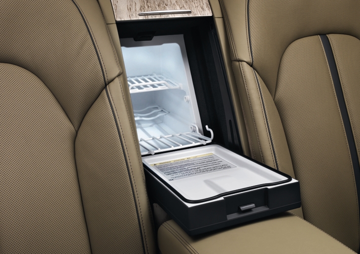 The full extra length of this sedan benefits rear-seat passengers. The back doors are longer, for even more convenient entry, and the space available inside can only be described as opulent. Rear passenger comfort can be enhanced even more if two separate power-adjustable seats are ordered. These can be heated, ventilated and adjusted in a variety of ways: forward and back, seat cushion depth and seat back angle with top section adjustable separately. There is also a fully adjustable lumbar support. The front passenger’s seat can also be moved from the rear if extra space is needed.