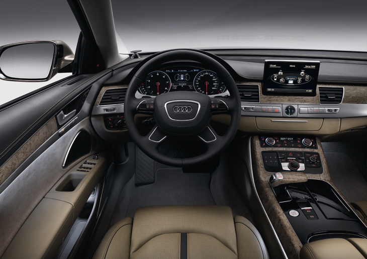 The Audi flagship combines a new level of technical intelligence with intuitively simple operation. Its multimedia interface (MMI) includes a pioneering innovation: In conjunction with the optional MMI navigation plus navigation system, it has a touchpad. The MMI enables the driver to control many functions intuitively. The navigation destination, for example, can be entered by tracing the letters on the pad with a finger.