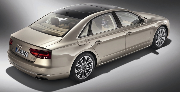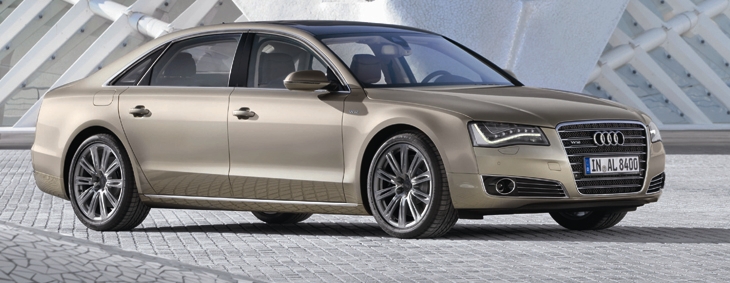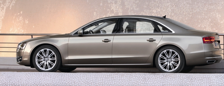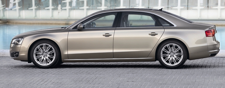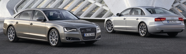 The full-size A8 sedan embodies the Vorsprung durch Technik for which Audi is renowned. The brand now presents the new top version of its flagship: The long-wheelbase A8 L sets standards for luxury, dynamics and efficiency. It will debut in fall 2010 with five engines, including the powerful twelve-cylinder with 368 kW (500 hp).
