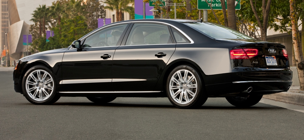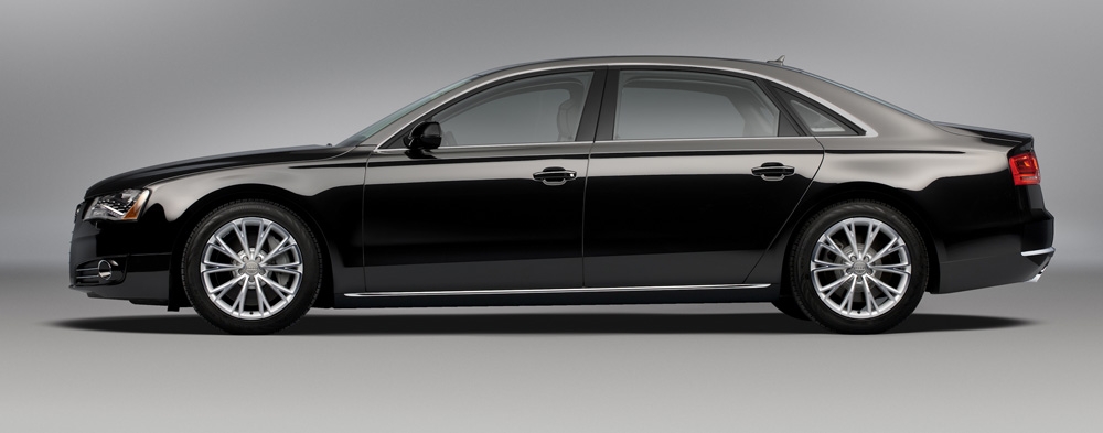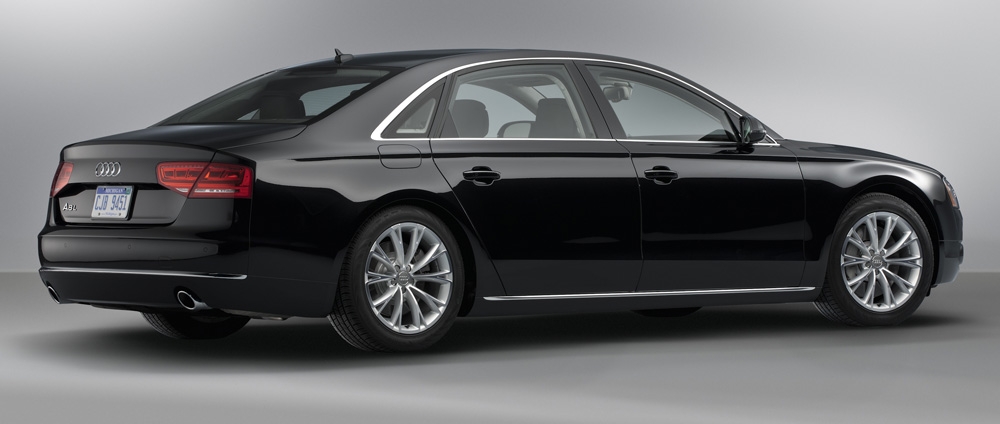 LED lighting technology is efficient, illuminates better and generates less heat than conventional bulbs. The A8 keeps in mind not only the needs of the driver but also those of other drivers with the LED high beam assistant. By using mirror-mounted sensors, the MY2013 A8 is able to detect oncoming car headlights and taillights from oncoming vehicles and automatically adjusts the high beams before glare becomes an issue for other drivers. The A8 3.0T has chrome-tipped oval tailpipes, while the 4.0T and W12 have chrome-tipped trapezoidal tailpipes.