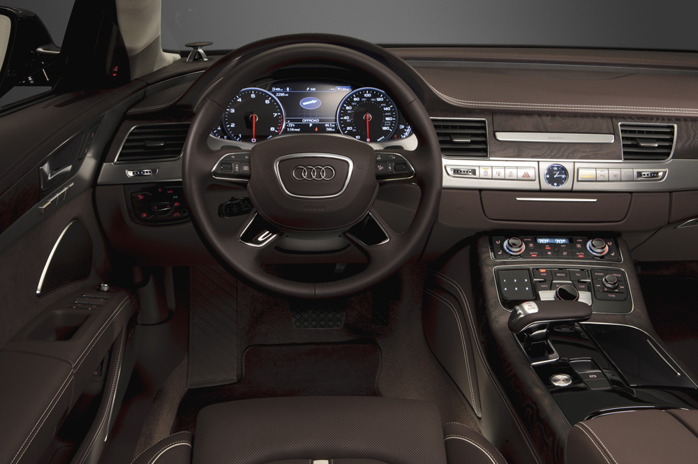 The 500 horsepower W12, powered by the 6.0 liter W12 engine, represents the pinnacle of the A8 model line with an available Executive Rear Seat package that makes traveling by car more like the finest business class air travel complete with reclining seat, footrest, and heated and cooled — as well as massage — seat functions. Two rear LCD screens that operate independently are available for rear seat passengers to use with BLUETOOTH headphones to enjoy watching DVDs or listening to music while following the Google Earth map navigation of their journey. For the more performance-oriented driver, the all-new Audi S8 delivers incredibly composed acceleration from 0 to 60 in just 3.9 seconds.
