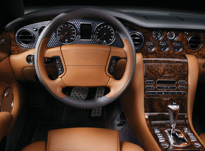 Bentley emblems are embroidered on the front seat backs and the rear seat centre, an iPod/USB interface is provided, while the full range of Bentley’s premium veneers is available, a knurled finish is applied to several handles and switches and a knurled, chrome gear knob is fitted.