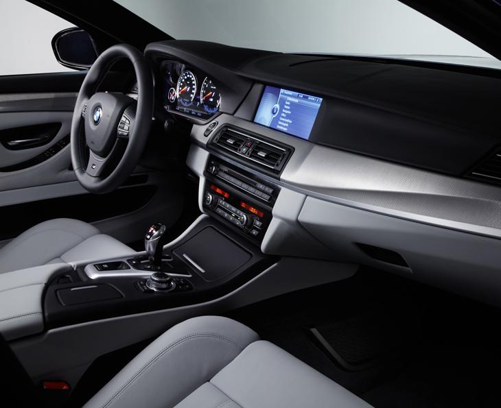 The interior design, control concept and innovative equipment features of the new car also play their part in creating the exclusive M experience. Sports seats, an M leather steering wheel, and an M-specific instrument cluster and centre console lend the cockpit a classical sports car feeling. For the first time, two M Drive buttons have been fitted as standard for the driver to call up the ideal car set-up for the situation at hand. High-quality, precisely finished materials, generous levels of space and the extensive range of equipment fitted as standard generate the premium ambience – laced with cutting-edge luxury – of a BMW 5 Series model. Added to which, customers can also give their car the personal touch, since virtually the full range of options for the BMW 5 Series Saloon are also available for the M5, including a host of driver assistance systems and mobility services from BMW ConnectedDrive.