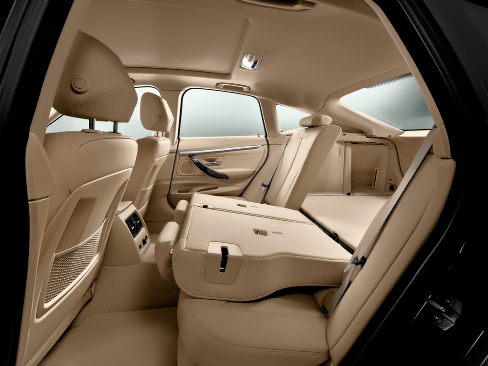 The luggage compartment also reflects the car’s increased dimensions, its 18.3 cu.ft. (520 liters) of trunk space (based on European measure) outstripping that of the BMW 3 Series Sports Wagon by a full cubic foot (25 liters). The large load aperture and high-opening tailgate make access easier. Practical features – such as the 40:20:40 split/folding rear seat with folding head restraints and tilt-adjustable backrests, and the two-piece parcel shelf – underscore the functionality of the BMW 3 Series Gran Turismo. The large load area can be utilized in many different ways, allowing intelligent space management. Practical features such as tie-down points, multifunction hooks and an underfloor storage compartment make it even more convenient to use, while the LED strips that illuminate the cargo area emphasize the premium quality of the 3 Series Gran Turismo.