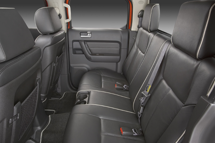 The H3T’s crew cab cabin offers seating for five adults, with a 60/40-split rear bench seat that folds flat for increased cargo-carrying options. The cabin’s layout is essentially identical to the acclaimed H3 SUV, with premium materials and attention to detail that give the vehicle a functional yet refined aesthetic.