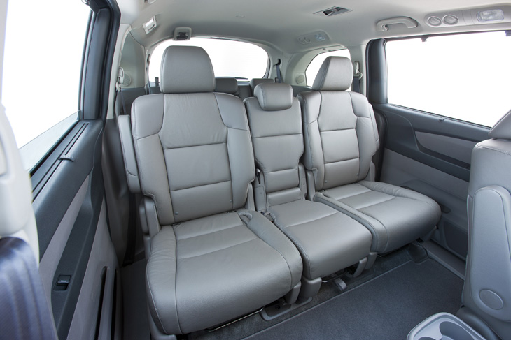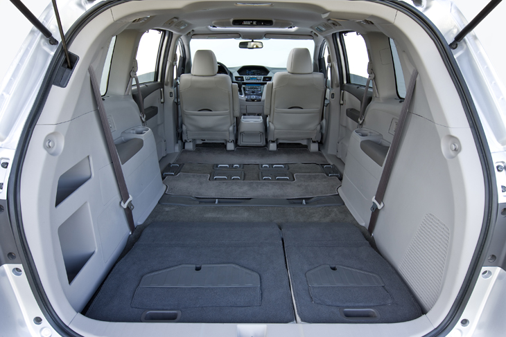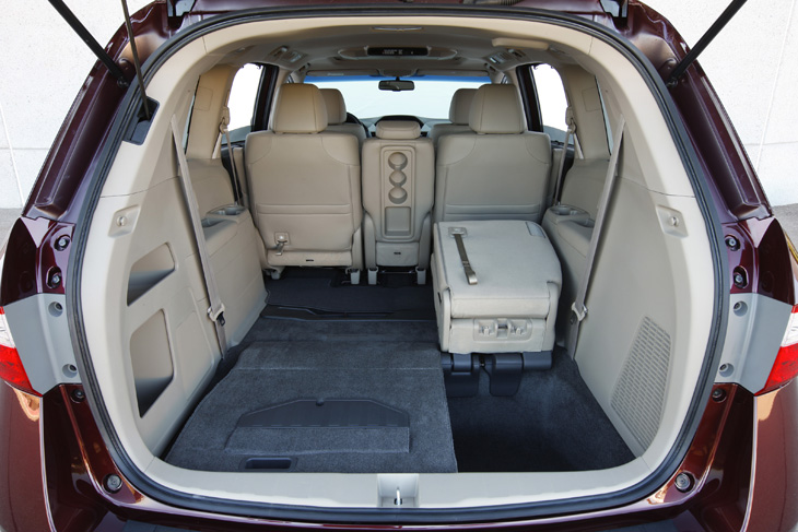 The One-Motion 60/40 Split 3rd-Row Magic Seat® allows the Odyssey to quickly and easily adapt between passenger and cargo duties. The 3rd-Row Magic Seat can accommodate up to three passengers and still provide 38.4 cubic-feet of cargo volume behind the seats, or fold completely flat into the floor to create 93.1 cubic-feet of cargo volume while still maintaining room for five passengers (four passengers on LX). With the second-row seats removed, total cargo volume expands to 148.5 cubic-feet. Total interior volume measures 210.0 cubic feet for passenger and cargo volume combined (Odyssey LX). The wide-mode adjustable 2nd-row seats with armrests and walk-in feature allow for the seats to move sideways for improved comfort and convenience. Additionally, the new-for-2011 multi-function 2nd-row seat on the Odyssey EX and above offers better comfort compared to the PlusOne seat it replaces on the previous generation, while also integrating a Lower Anchors and Tethers for CHildren (LATCH) attachment point.
