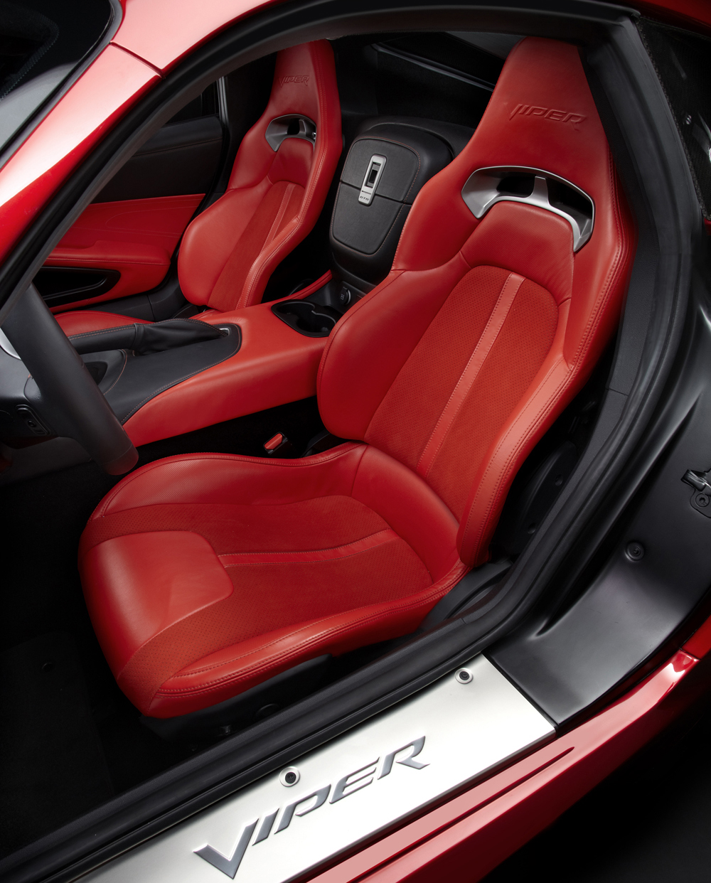 For the first time, all major interior surfaces are sewn and wrapped with additional padding applied in comfort areas. On the Viper GTS model, all surfaces are fully leather-skinned. Standard accent colors are applied to the seats, doors, center console and stitching.