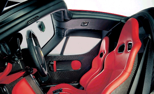 The Enzo inaugurates a new generation for Ferrari cars even where the styling of the interior is concerned: the so-called man-machine interface acquires greater effectiveness, and the driver is placed in the best possible condition to exploit the car’s extreme performance. The “pure, hard” spirit of the car, the limited space, and the aim of keeping things as light as possible suggested an extremely functional style for the interior. All of the main surfaces are made from unadorned carbon fibre. The functional elements are hooked onto a structural aluminium crossbeam.