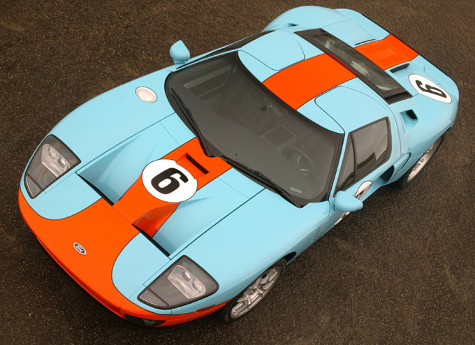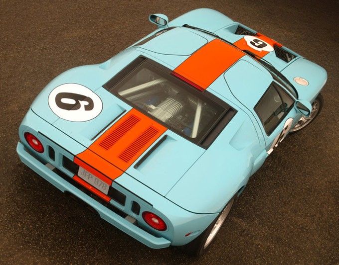 - Heritage Blue and Epic Orange paint scheme recalling the JW Automotive/American Gulf Oil-sponsored Ford GT racers.
