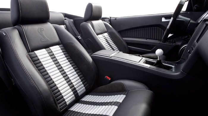 The base 2010 Mustang received a powerful new interior design. For the GT500, the interior design team members challenged themselves to raise the bar even higher to create the ultimate Shelby Mustang interior.
