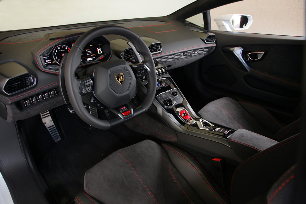The uncompromising precision and attention to detail with which the interior of the Lamborghini Huracán LP 610-4 is crafted, is rooted in the finest tradition of Italian craftsmanship and sets new benchmarks in the league of super sports cars. Luxury materials indulge the senses with their fine look and feel; their selection and the choice of colors on offer are clear evidence of the fine touch and keen eye of the Lamborghini designers. The upper area of the dashboard is clad in dark Alcantara to avoid reflections in the windshield. LEDs provide the interior illumination, too – there is not as single conventional bulb anywhere on or in the car.