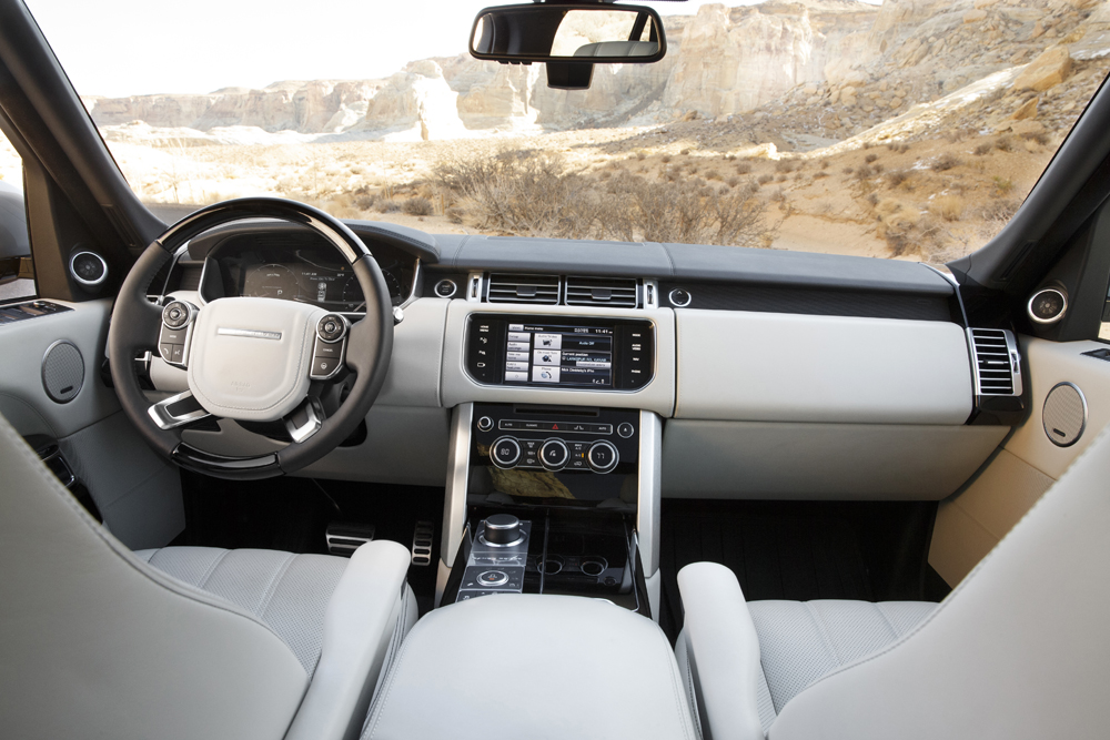 For its second model year, the Range Rover makes another leap in fuel efficiency with a new 340hp 3.0-liter supercharged V6 engine replacing the previous 5.0-liter V8. As with the V8, the supercharged V6 is teamed to an 8-speed automatic transmission. The new powertrain yields comparable performance to the 2013 V8 model but with markedly better fuel economy, now 17 city/19 highway (23 combined) versus 14 city/16 highway (20 combined) for the 2013 model.