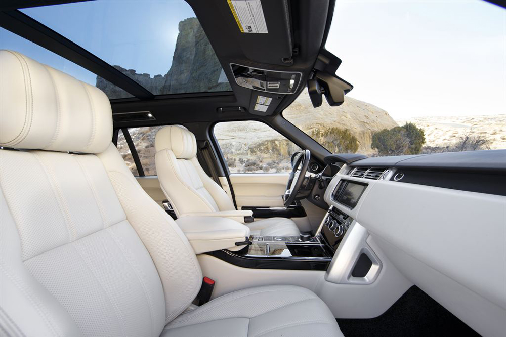 Instantly recognizable as a Range Rover, the new vehicle takes a step forward with a bold evolution of the model’s iconic design language. The sumptuous interior incorporates distinctive Range Rover design cues, but executed with a contemporary treatment. Clean, elegant surfaces are presented using the finest leathers and veneers. The new Range Rover provides occupants with a feeling of serene isolation, meeting the highest standards for Range Rover refinement. The strong aluminum body structure, acoustic lamination of the windshield and side door glass, and new-isolated engine mounts all help reduce noise. A split power folding upper and lower tailgate setup offers ease of access and versatility.