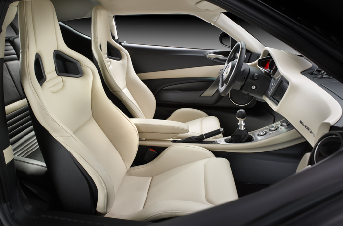It is, according to Russell Carr, “A huge departure from what people might expect based on Lotus’ recent past. The CEO wanted the Evora’s cabin to feel very special and to be surprising as well as sporty. Precision engineered metal inserts and quality edge-lit switches are brilliantly juxtaposed against soft hand-stitched leather surfaces to give a modern interior with a classic twist.”