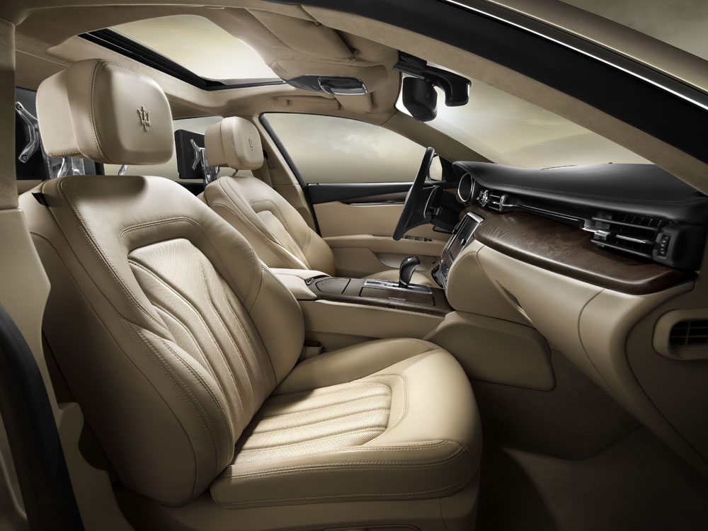The Quattroporte standard equipment includes leather, heated front seats with 12-way electrical adjustment, dual-zone climate controlled air conditioning and active cruise control, while the upper and lower dashboard and the interior upholstery are wrapped in Poltrona Frau leather.
