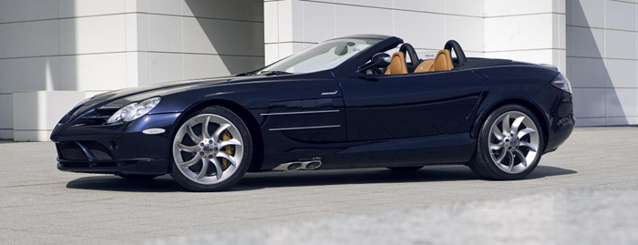 Mercedes-Benz announced that it will offer the SLR McLaren super sports car in the form of a roadster. Showcasing the latest in Formula 1 technology, the SLR McLaren is constructed almost entirely of carbon fiber, providing a very high degree of safety as well as extreme torsional rigidity for outstanding handling characteristics. Powered by a supercharged (Kompressor) 5.5-liter, 617-hp AMG V8 engine, the SLR McLaren Roadster can achieve a top speed of 207 mph. Thanks to its fully retractable top, the Roadster offers undiluted open-air driving pleasure at the highest level, providing occupants with a comfortable open-air experience suitable for everyday use. U.S. deliveries of this new model will begin in Fall 2007.