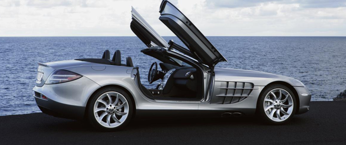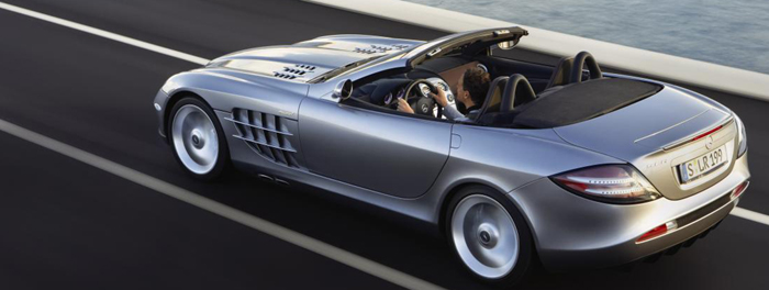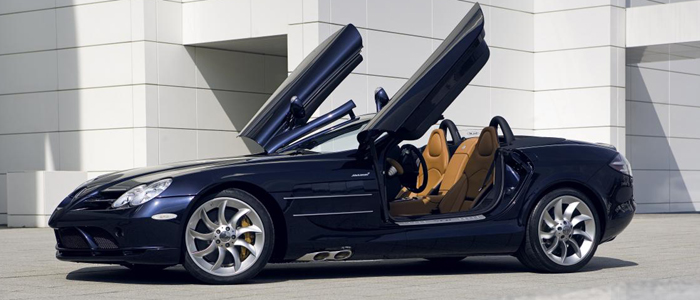 Like the SLR coupe, the new Mercedes-Benz SLR McLaren Roadster once again unites the legend of the successful SLR racing models from the 1950s with the innovative technology of modern Formula 1 vehicles from the Vodafone-McLaren-Mercedes racing team. Distinctive stylistic elements such as the arrow-shaped tip of the Formula 1 Silver Arrow, establish a visual link with the racing cars. The SLR legend of the ’50s lives on stylistically in the distinctive lateral louvers, side pipes behind the front wheels and the wide-opening gullwing doors.