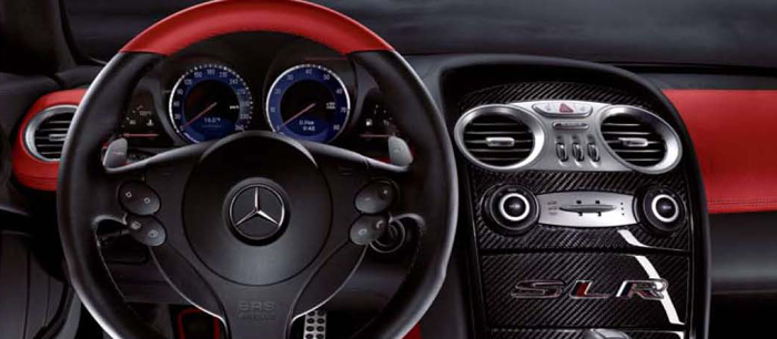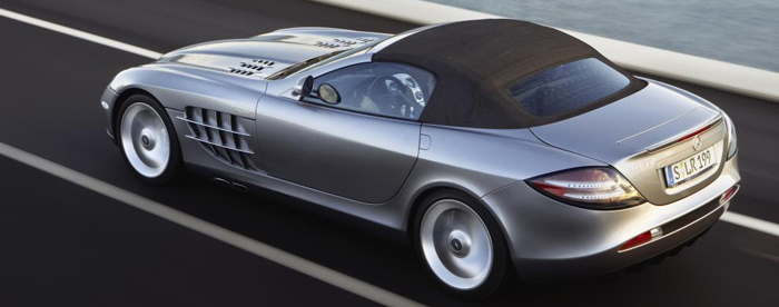 The exceptional qualities of the Roadster are attributable also to the fully-retractable top, which blends harmoniously into the flowing silhouette of the SLR McLaren. Its newly developed roof material – which is available in three different colors – not only guarantees complete practicality for everyday, but also endows the high-performance sports car with characteristics previously associated with closed cars. In fact, conversation is still possible at well over 120mph on open-air journeys thanks to the favorable aeroacoustics.
