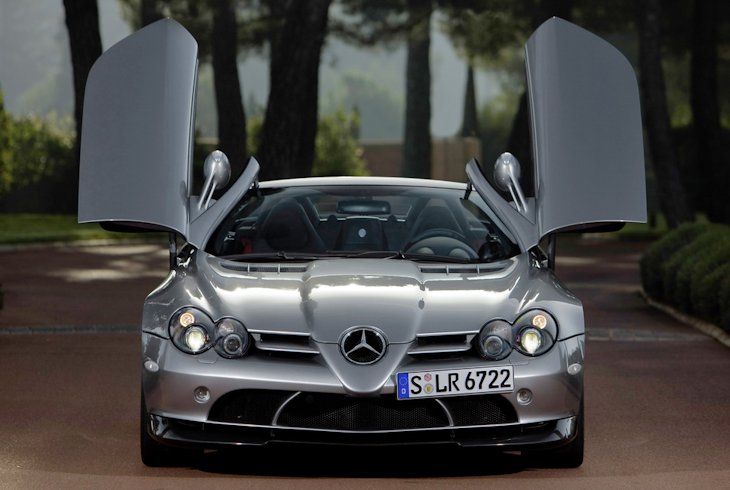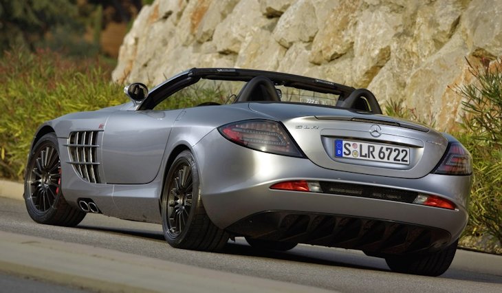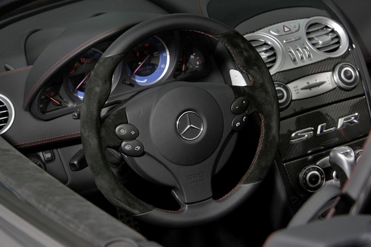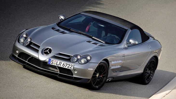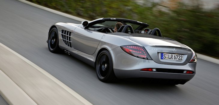 Mercedes-Benz SLRMcLaren Roadster 722 S. With an output of 478 kW/650 hp, acceleration from 0 to 100 km/h in 3.7 seconds and a top speed of 335 km/h, this open two-seater betters the standard set for open-air super-sports cars by the SLRMcLaren Roadster. Both have a fully recessible soft top suitable for high speed driving, and are made from carbon fibre. This produces a very high level of safety and extremely high torsional strength. In addition to a higher engine output, the new SLRMcLaren Roadster 722 S has an even more dynamic suspension setup and further aerodynamic improvements.
