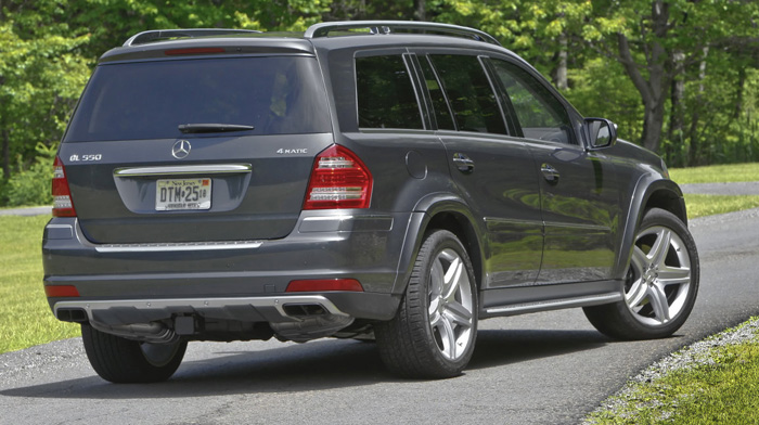 The GL550 is powered by a 5.5-liter all-aluminum V8 that produces 382 hp and 391 foot-pounds of torque, with maximum torque available from 2,800 to 4,800 rpm, providing impressive engine response over a broader RPM range. The 4.6-liter engine in the GL450 and the 5.5 in the GL550 are part of the same engine family that comes with four valves per cylinder, double overhead camshafts in each cylinder bank and variable valve timing for both the intake and exhaust valves. The V8s also have “tumble flaps” in the intake for better fuel economy and a two-stage intake manifold that broadens the power curve.