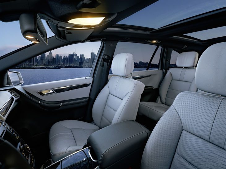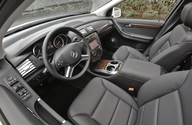All R-Class models have numerous standard features which help make long journeys as well as short trips around town even safer and more relaxed. These features include the unique anticipatory occupant protection system PRE-SAFE®, a complete restraint system with eight airbags, crash-responsive NECK-PRO front head restraints, and a tire pressure loss warning system. New for 2011, the optional Blind Spot Assist makes lane changes significantly safer by monitoring the sides of the vehicle and alerting the driver with visual and audible warnings whenever they signal a lane change with another vehicle alongside. Safety is also enhanced by the sophisticated telematics system “mbrace”, the COMAND system with an extremely user-friendly interface, as well as the raised seating position. This gives the driver a good view of the traffic conditions, enabling him or her to recognize potential dangers more quickly and easily.