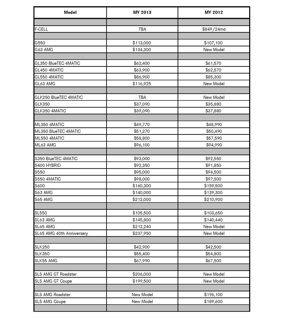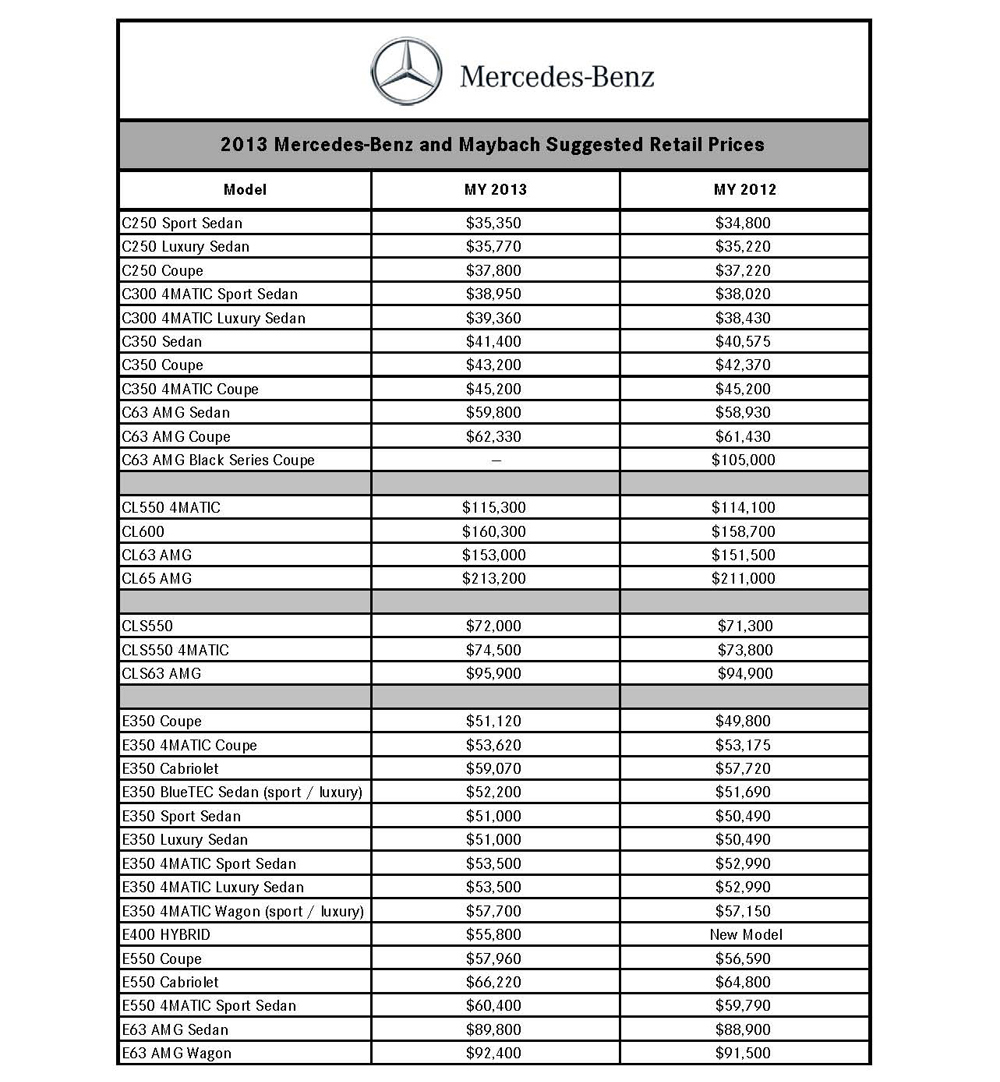 Other / Mercedes-BenzMercedes-Benz Model Update / Pricing (2013) Share this: Click to share on Facebook (Opens in new window) Facebook Click to share on X (Opens in new window) X