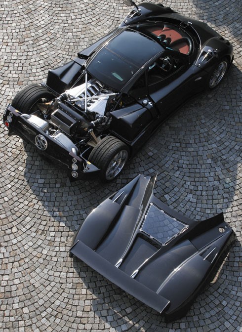 The Pagani Zonda F was first introduced in 2005 at the Geneva Motorshow. With a carbon fiber tub and lighter chromoly subframes and powered by a 7.3 liter V-12 engine from AMG that produced 591 horsepower and 561 lb-ft of torque, the Zonda F has a Top speed of 345km/h (214.383 MPH). The Pagani Zonda F Carbon-ceramic brakes, lighter suspension arms, and revised suspension geometry.